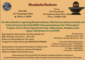 Ekadasha Rudram is the sacred recitation of the Rudram (from Yajur Veda) eleven times, followed by Chamakam once after each Rudram chanting.